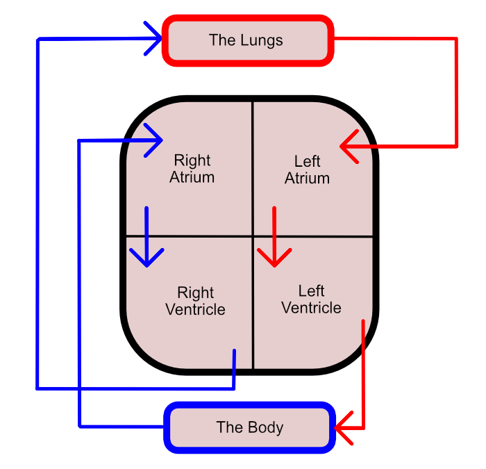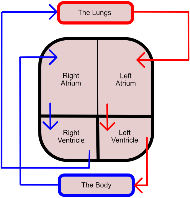 The heart is a muscular organ that pumps blood to all the tissues in our body through a network of blood vessels. The right side of the heart pumps blood through the lungs where it picks up oxygen. The left side of the heart receives the blood containing oxygen and pumps the blood to the rest of the body.